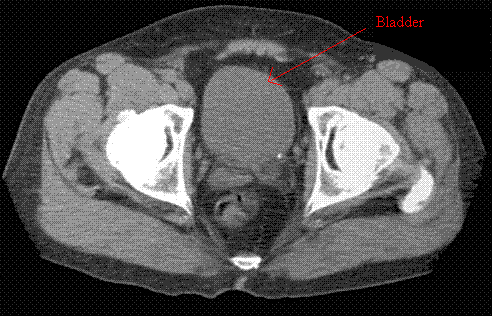 Your effective depth will increase if you are using contrast in the bladder for your dose calculation.