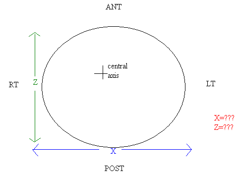 If a Rt-Lat SSD reads 81 cm and the Lt-Lat SSD reads 79.5, and the AP reads an SSD of 85, and the PA SSD reads an SSD of 87.5, please solve for x and z respectively (please use the diagram below to help you):